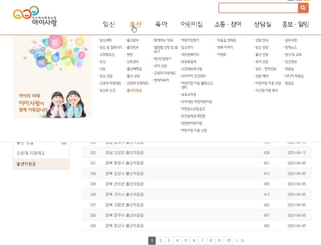 지역별 출산 지원금 확인 할 수 있는 곳