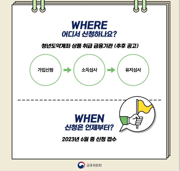 오는 6월 8일 부터 정부에서 지원하는 청년도약계좌의 신청을 받습니다. 일정 소득 기준을 충족하는 청년들을 대상으로 하여 5년간 월 70만원 저축하면, 5000만원의 만들 수 있는 적금 계좌입니다. 정부에서 주최하는 청년들의 자산형성을 위한 금융상품인 만큼 이득을 볼 수 있다면 신청자격이 된다면 반드시 신청하는 것이 좋아보입니다. 만 19세~34세 청년에 해당한다면 꼭 알아보시기 바랍니다. 지금부터 가입조건과 신청방법 그리고 자세한 금리와 취급기관에 대해서 알아보겠습니다.