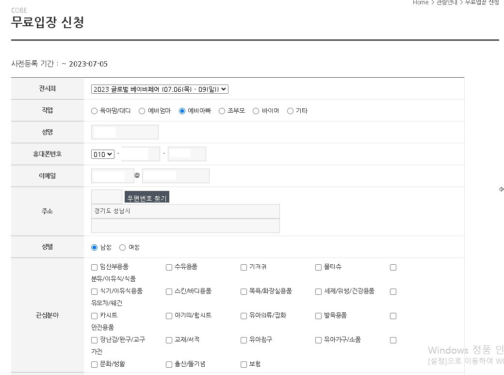 코엑스 2023 글로벌 베이비페어 사전등록 방법